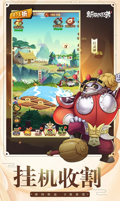 《新葫芦兄弟》手游原班运营团队倾力打造。他是一款传统国风休闲放置手游,深度还原动画片《葫芦兄弟》原作剧情设定,致力唤醒童年记忆,还玩家一个简单纯粹的童年,重拾儿时观影时的向往和感动。
