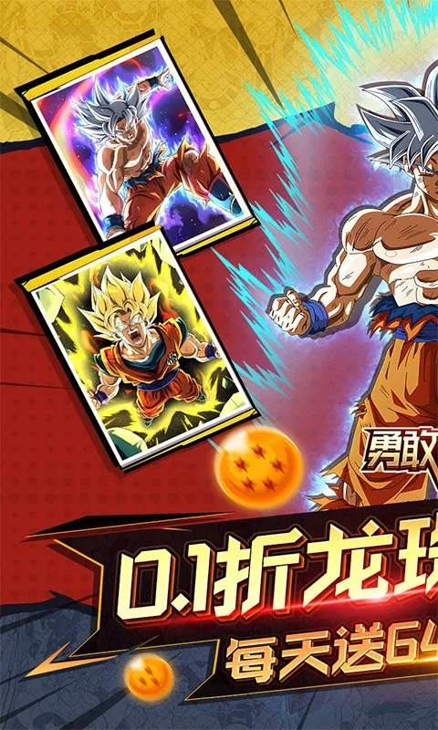 《勇敢幻想》0.1折龙珠免费版,每天送648代金券!上线送超一悟空,新服狂送礼,5星布罗利登录送。七日目标奖,合体黑悟空、超赛神悟空免费送。悟空降临,完成任务送超蓝悟空。累计签到送千抽,豪爽招募升星不愁。超多龙珠战士,战力易涨,一起随悟空征战第七宇宙!