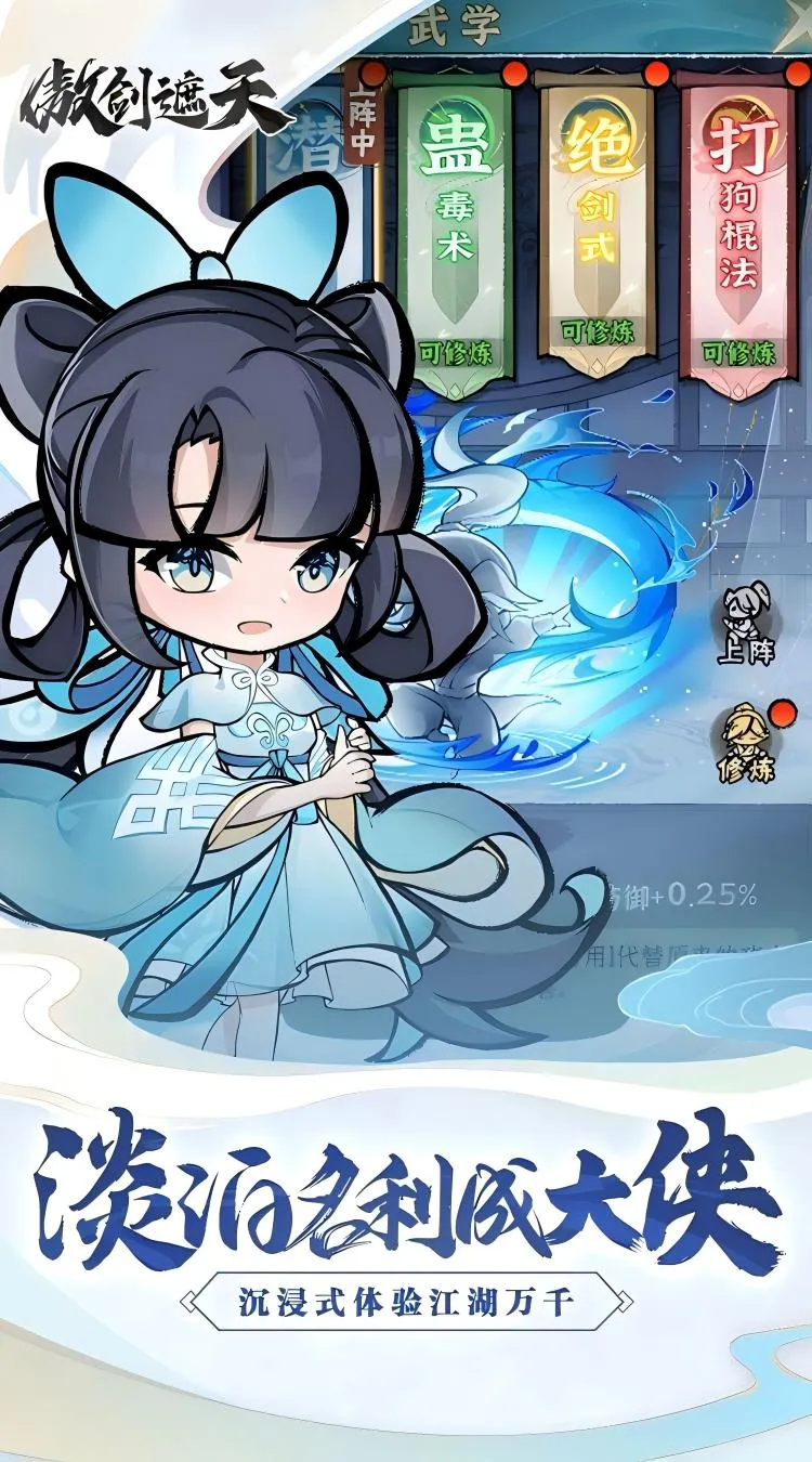 《傲剑遮天》是一款武侠题材畅快开宝箱的放置RPG游戏,边钓鱼边修炼,收集神装笑傲天下。游戏里有各种传说装备和大量套装,为广大热衷刷装备的玩家带来最本质与丰富的收集体验。角色属性结合不同的装备特性,少侠们可自由搭配,形成专属于自己的流派。
