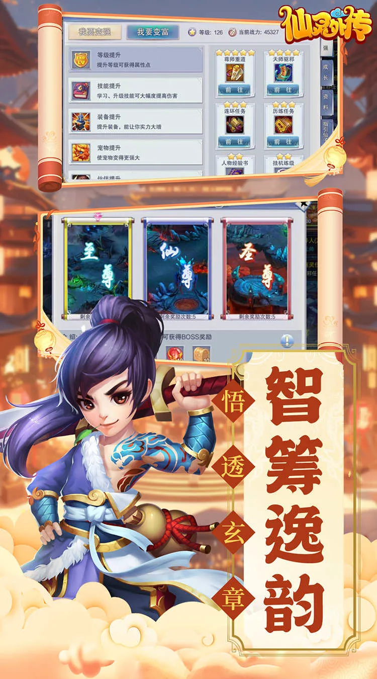 《仙灵外传》传承回合制经典,小到师门任务,大到跨服PK一应俱全,日常挖宝、捉鬼等玩法更是一个不少;从升级修炼到宠物育成,从排兵布阵到技能搭配,处处展现出玩家的过人智慧;全新推出的结婚系统,各类社交玩法全面升级,让你在这个冬天告别寂寞!更有双人飞行坐骑、群英大闹天宫等特色玩法等你体验!
