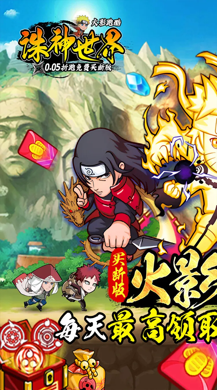 1、首款火影跑酷首续0.05折免费买断版强制来袭,充值比例1:10;