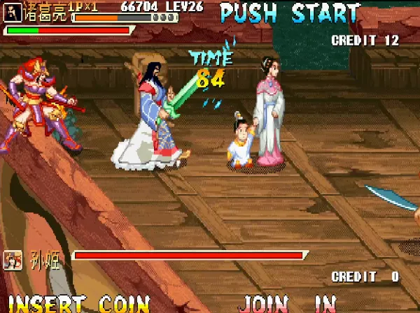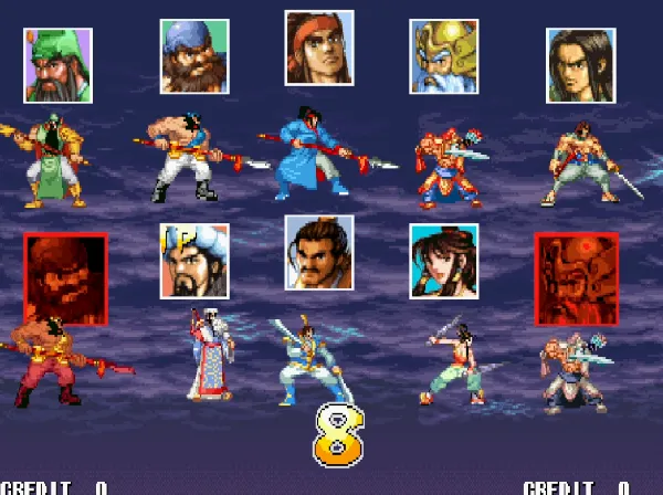 1:全部人物均可选相同角色,在初始选人画面或者续币时,各个玩家可以选用相同的角色,例如1P、2P、3P、4P一起玩时,大家都可以都可选诸葛亮,都可以选赵云。总之,每个玩家都可任选全部的 10 个人物。
