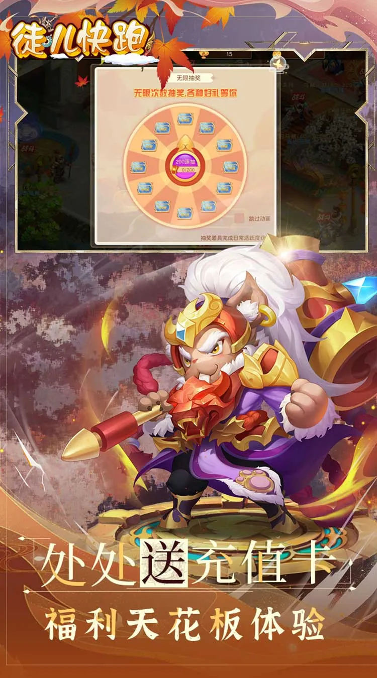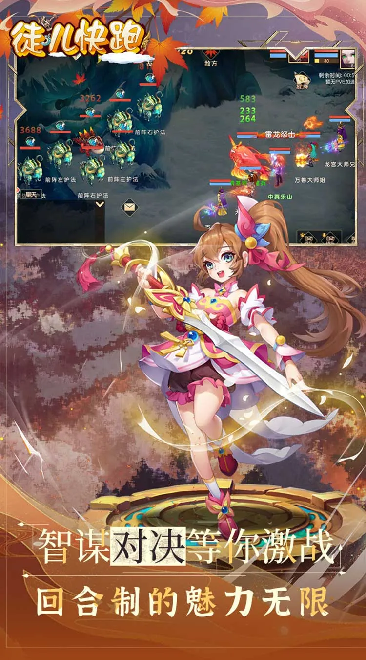 《徒儿快跑(首续0.05折)》是一款经典回合制类型的游戏。最新版本福利多多,游戏处处充值卡,拥有优质的画面,复杂多变的系统,和谐的生态环境;创角送特别时装和西游道具,超自由的市场贸易,刺激的伙伴系统,激烈的跨服pk,任你酣战淋漓斗三界!策略的对决,智慧的较量,回合制游戏的无限可能!