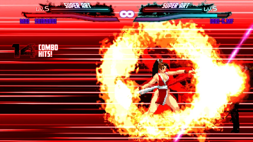 此版本以拳皇97为主题整合的一个Mugen,不过只有游戏开场动画和原来的97一样,游戏整体的玩法和原来的拳皇97都是不一样的。这个版本出招都有一定的简化,连招方面也比较简单,比较适合新手玩家。