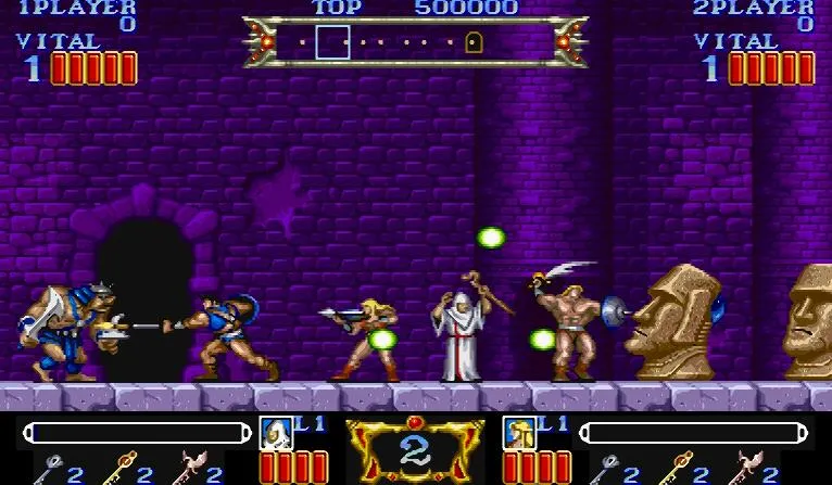 《魔法之剑:英雄幻想》是一款横版动作街机游戏,游戏新颖,包括武器升级,辅助人物攻击等等,游戏中可以得到钥匙选择性的开门然后会出现各种人物帮助你进行攻击,而且不但你自己可以升级,辅助的人物也可以升级,最终的boss是一个巨大的恶魔。