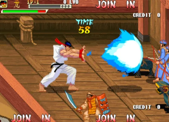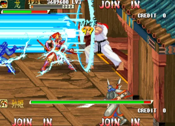 三国战纪:街霸风云是在三国战纪:风云再起基础上进行修改的一个版本,游戏把关羽替换成了街霸游戏里的“隆”这个角色,替换的人物招式,打击感还算不错的,不过配音还是原来关羽的,要是能把配音也替换成隆的原声,那就更加完美了。