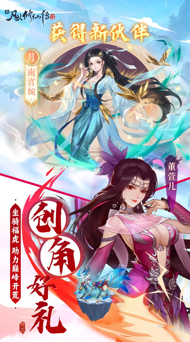 1,创角送元婴期伙伴掩月·南宫婉,送限定坐骑福虎。
