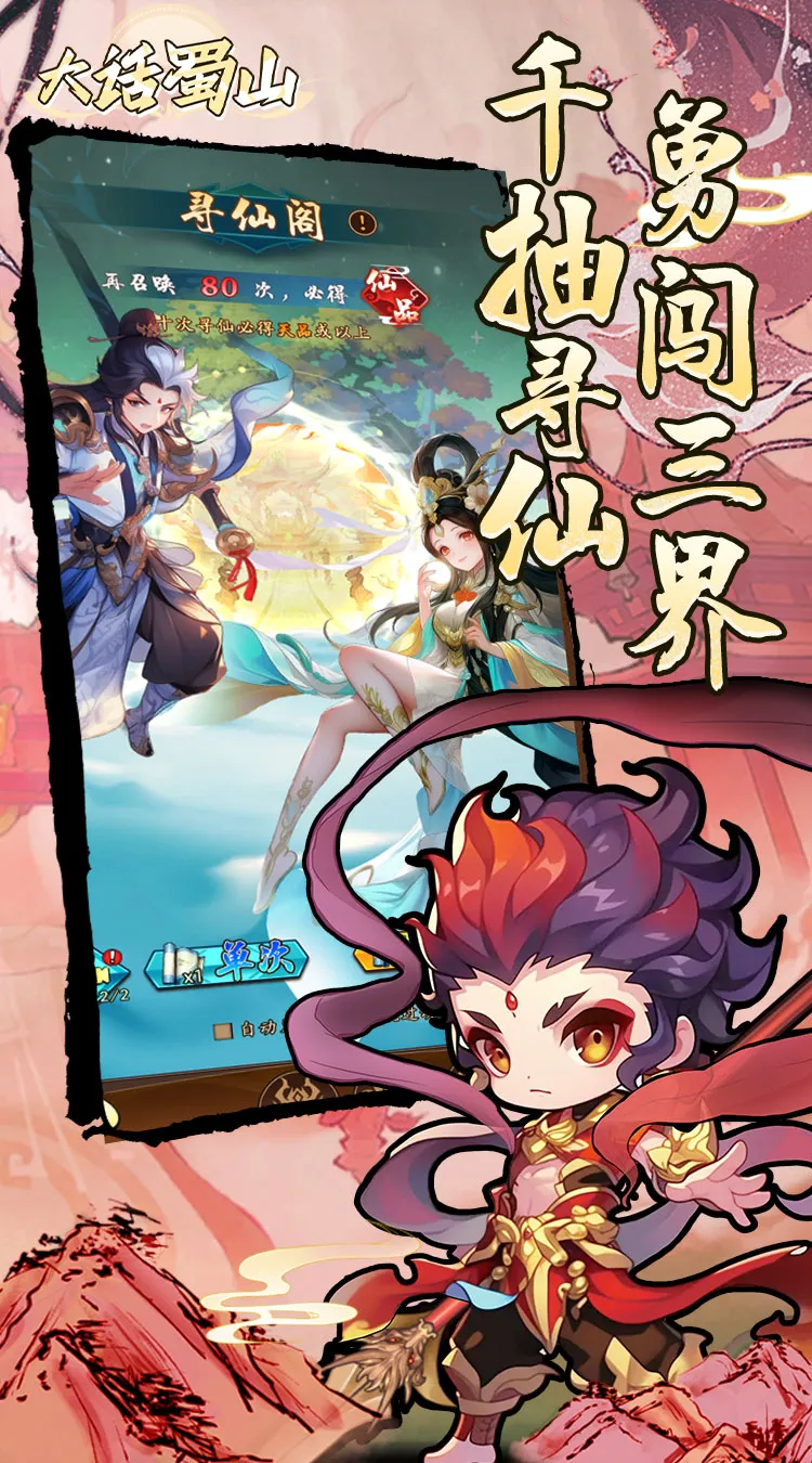 《大话蜀山》一款基于放置挂机自动战斗体验与开箱子惊喜抽奖体验相融合,有一定养成深度和策略搭配的修仙养宠题材RPG卡牌小游戏,易上手,多路线培养,三大阵营策略搭配。提供更爽的成长感受、更多的策略搭配空间和更深的养成深度。