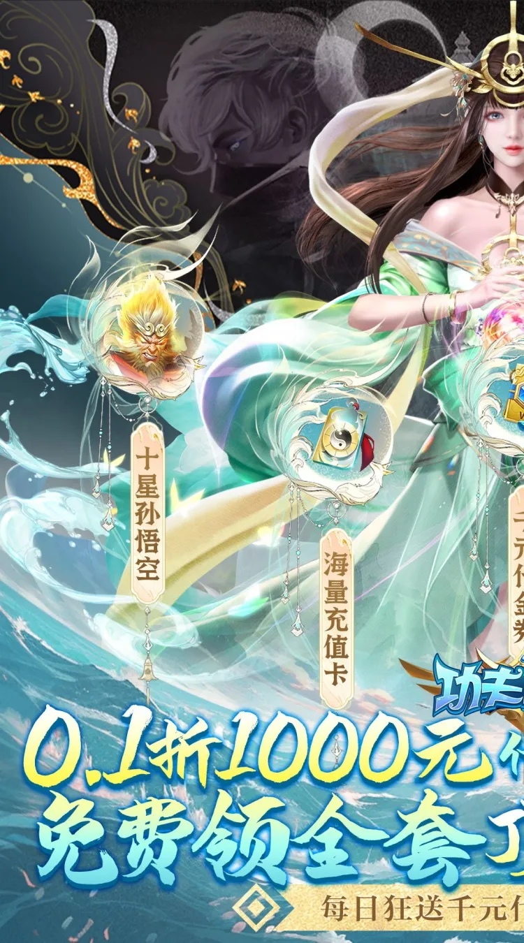 2.推图和挂机可得万抽、全套顶级sss阵容、大量充值卡、欧皇红包等海量福利;