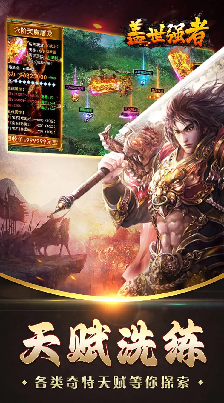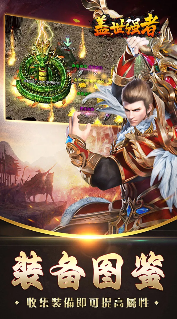 盖世强者(奇遇江湖乱爆)是一款经典微变版本传奇手游!上线即领切割神器、开荒神技!实物宝箱签到送、自动回收免费开!每日悬赏,完成即可获取大量充值点!装备图鉴,收集装备即可提高属性!天赋洗练,各类特色天赋等你探索!特色系统,经典来袭,决战沙城!