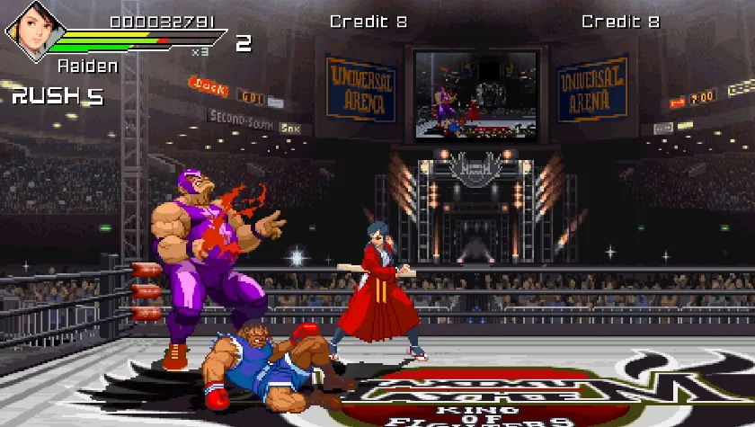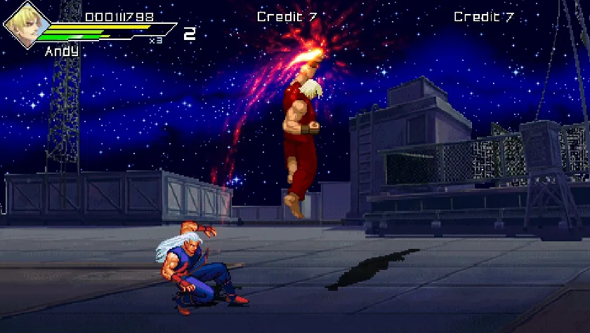 暴怒刑事2:拳皇世纪是玩家制作一款以拳皇人物为素材制作的横版动作游戏,游戏中加入了原创的游戏剧情,融合了格斗和过关游戏的特点,加入了严谨的系统.拥有丰富的人物和必杀技以及爽快的手感,超高的可玩性以及优美的画面和音乐会令你欲罢不能。