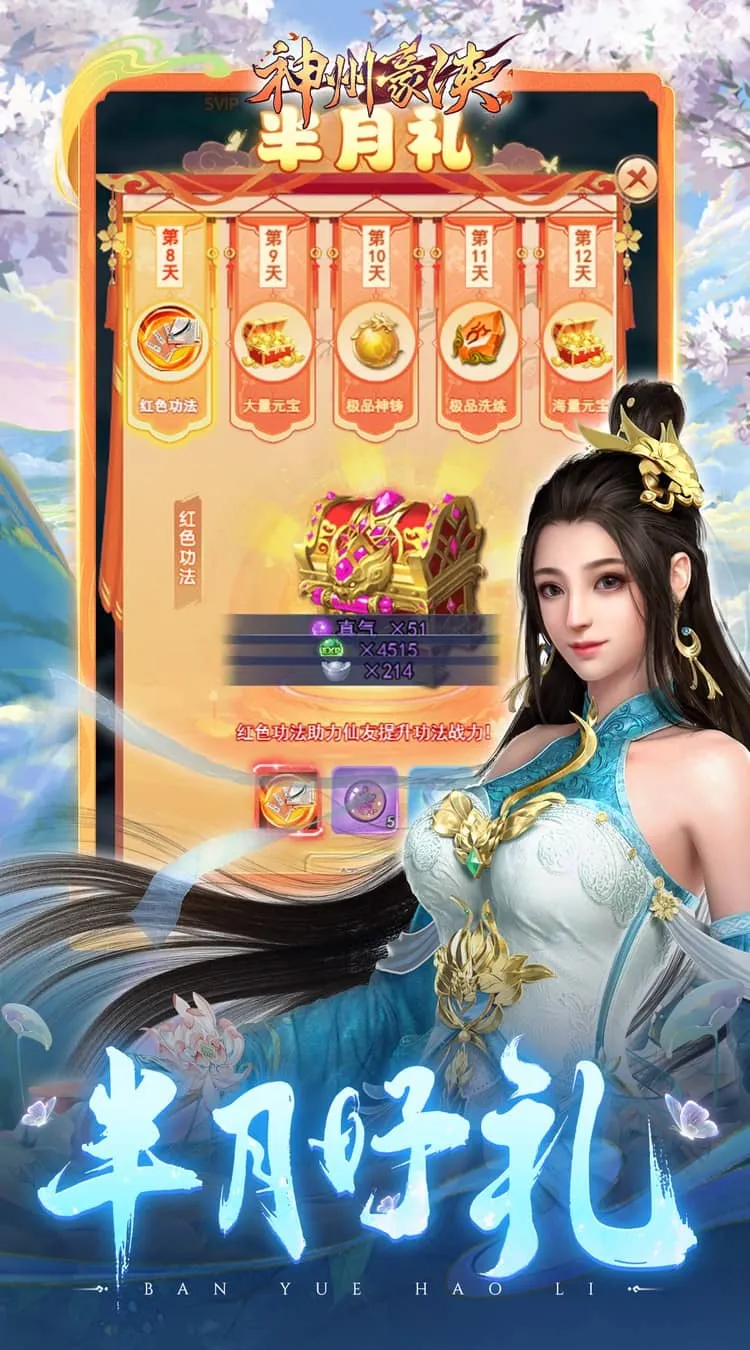 礼包详情:元宝*5000;真气*88888;7级宝石箱*1