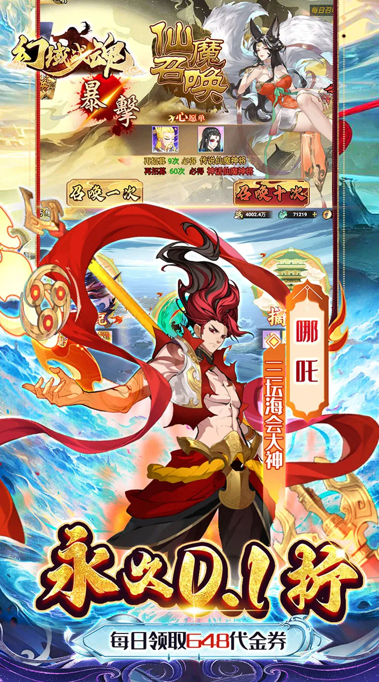 【创角送礼】648代金券,VIP经验,神将【哪吒】,限定装扮等;