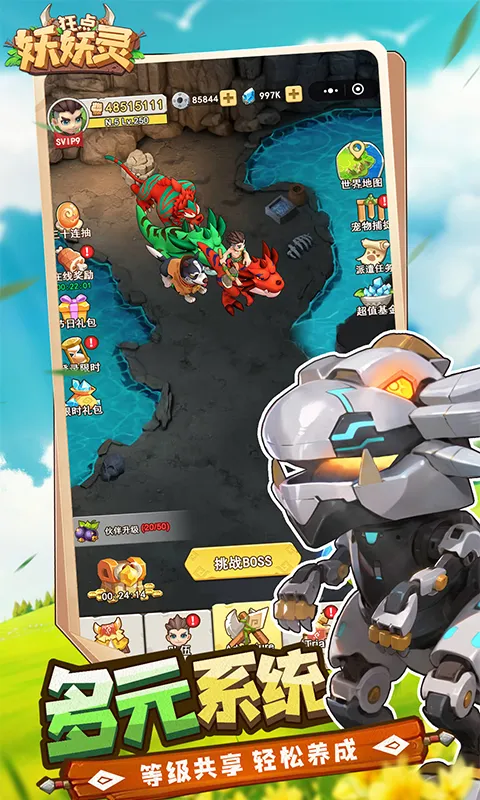 《狂点妖妖灵(0.1折当回原始人)》在参观博物馆的你,刹那间,你竟穿越到了遥远的石器时代。在这一瞬间,你化身为这个世界的土豪,手握最昂贵的装备,捕猎珍稀的神宠,招募人手开采石币,建立起自己的部落。你与野兽激烈搏斗,穿越险峻的地形,与其他部落争夺领土,亲身体验石器时代的生存智慧与无尽挑战!最终将打造出最强大、最富有的原始部落!