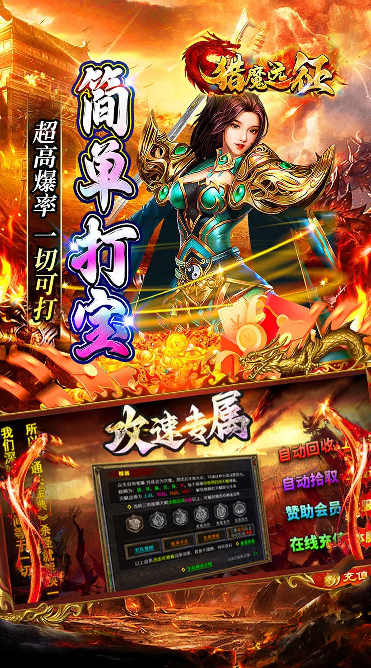 《猎魔远征》是一款经典单职业传奇正版手游!上线攻速拉满,一怪一专属,装备保值,简单易懂无限刀体验,不烧脑!上线即可领取自动回收、自动拾取、自动使用、仓库全开等特权;全新的天赋体系,无论你是大佬散人,同一起跑线,一人一套天赋,不一样的惊喜体验!本服打怪即可获得道行点,兑换本服内一切物资包括真实充值!