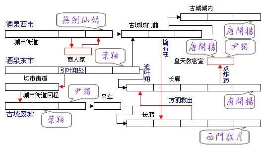 向右走就是牢房,有乞丐和狼。继续走是乞丐头子:"又有一只肥羊送上门来。"说就着杀了起来。救出上面的牢房关着人会有一只箱子,里面有分数和何首乌。杀了乞丐还有狼,之后就是BOSS:上官雪(第一幕是救方羽进密室的)撞上官雪5次有"天魔追魂手",杀死上官雪有 "冰诀";或者BOSS:怨灵韩山童(第一幕是追叶翔进密室的)打死韩山童有"炎诀"跟"冰诀"。