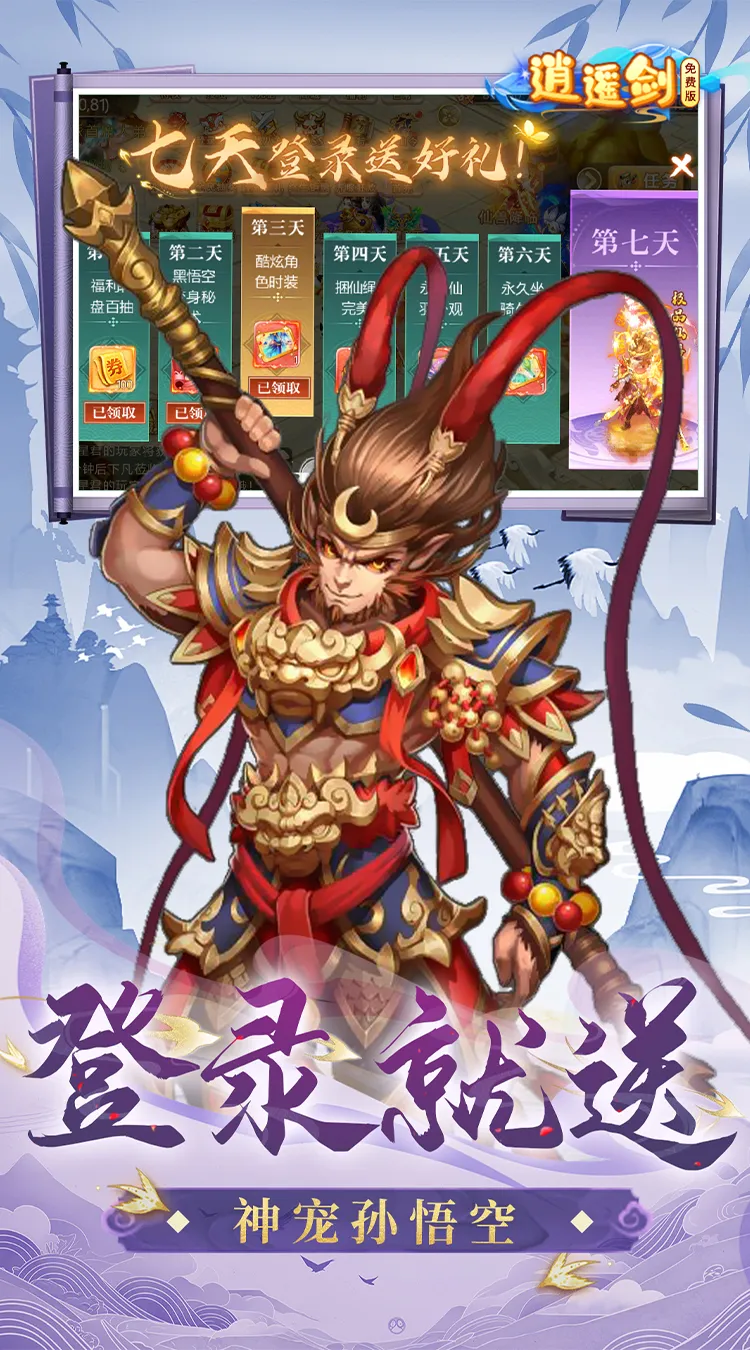 ★ 升级送海量充值卡,3日送永久时装精灵族,5日送永久仙羽灵雀之翼、橙装,7日顶级仙兽齐天大圣