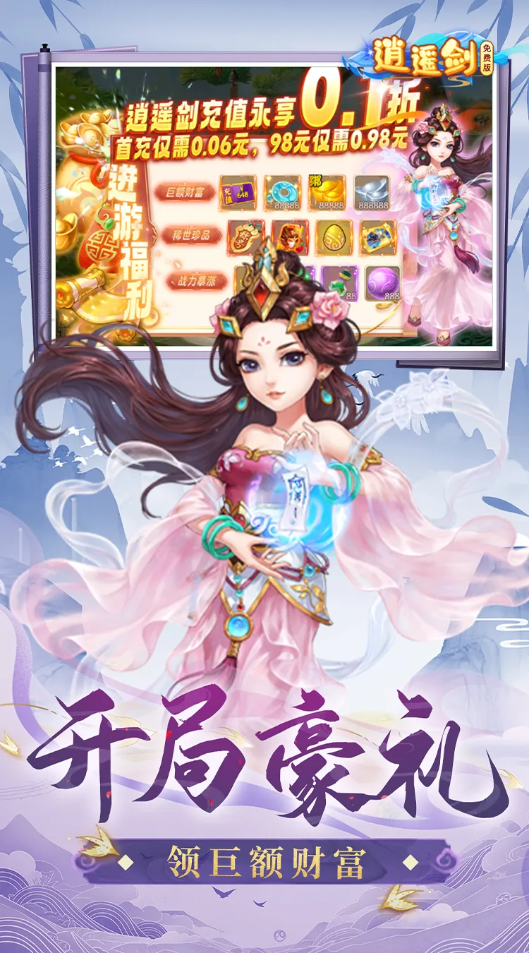 ★ 免费创角送财富锦囊:充值卡*648元,水玉*88888、银元888888、绑元88888