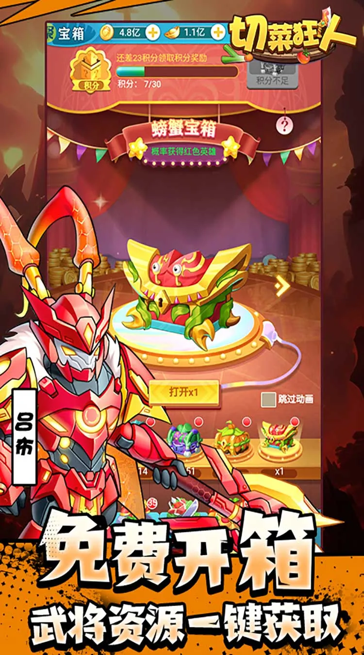 《切菜狂人》是一款Q版拟人画风的休闲放置挂机游戏,玩家在游戏中扮演一位绝世厨神,通过指挥蔬菜大军与怪物作战,培养成为一个顶尖厨神。游戏提供了多种多样的蔬菜角色供玩家选择,并允许玩家自由搭配组合,打造一个独特的蔬菜世界。游戏的主要活动包括招募狂欢、装备狂欢和战宠狂欢,这些活动分为不同的阶段,每个阶段都有其特定的目标和奖励。