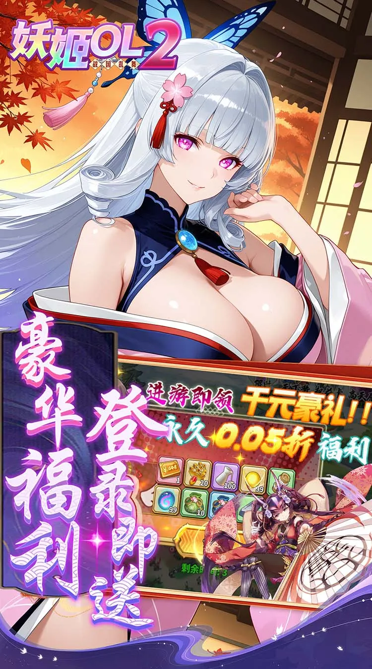 《妖姬OL2》是一款治愈系战国幕府题材和风卡牌SLG手游,百位幕府名将化身少女战姬,陪你策略攻城、制霸扶桑!玩家在游戏中以觉醒者的身份,搜集和培养超过100位特色鲜明的名将战姬,自由组建战斗小队,率领麾下士兵,联合家族成员,施展谋略攻占名城,统一天下。众多经典战役,海量可攻打城池,丰富的策略流派,古典华美的和风画面,带你畅享爽快养眼的SLG战斗新体验。