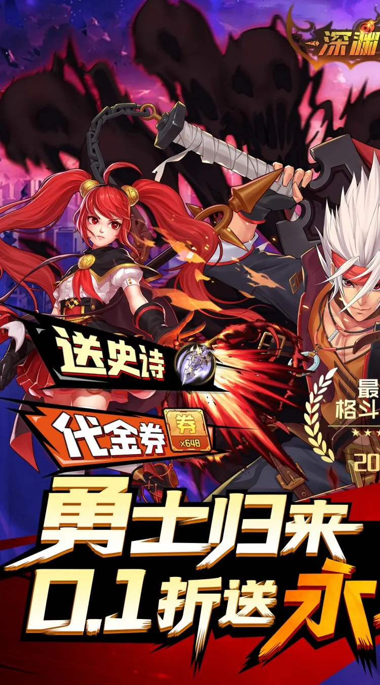 《深渊契约》是一款魔幻冒险挂机手游。故事发生在遥远而神秘的舞刃大陆,因受到外来邪恶势力的入侵,整个大陆支离破碎,为了保护最后的净土-光熙城邦,你将化身为一名天赋异禀的英雄战士,深入深渊领域,一路过关斩将、披荆斩棘,解锁海量装备技能,挑战深渊跨服Boss,更有多人副本、公会争霸、秘境寻宝、转职觉醒、战宠养成等海量特色玩法。亲爱的勇士,属于你的冒险之旅即将开启,快来挑战吧。