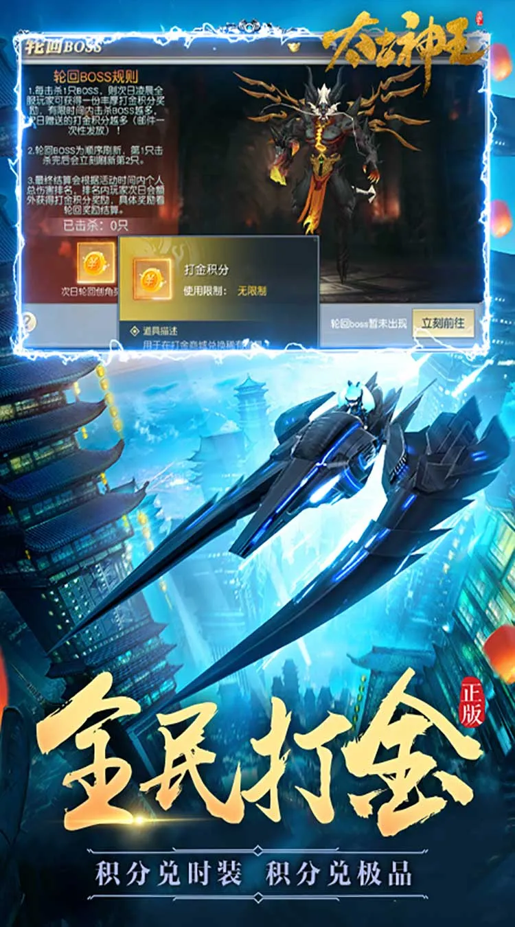 《太古神王(全民打金GM版)》是一款华丽3D仙侠MMORPG手机网游,改编自同名玄幻小说。游戏特色包括3D玄幻世界的沉浸式体验、360度全视角开放探索、五大职业体系和七次转职突破。玩家可以自主设计时装武器,搭配神兽坐骑、华丽羽翼和上古神兵,享受丰富的个性化选择。