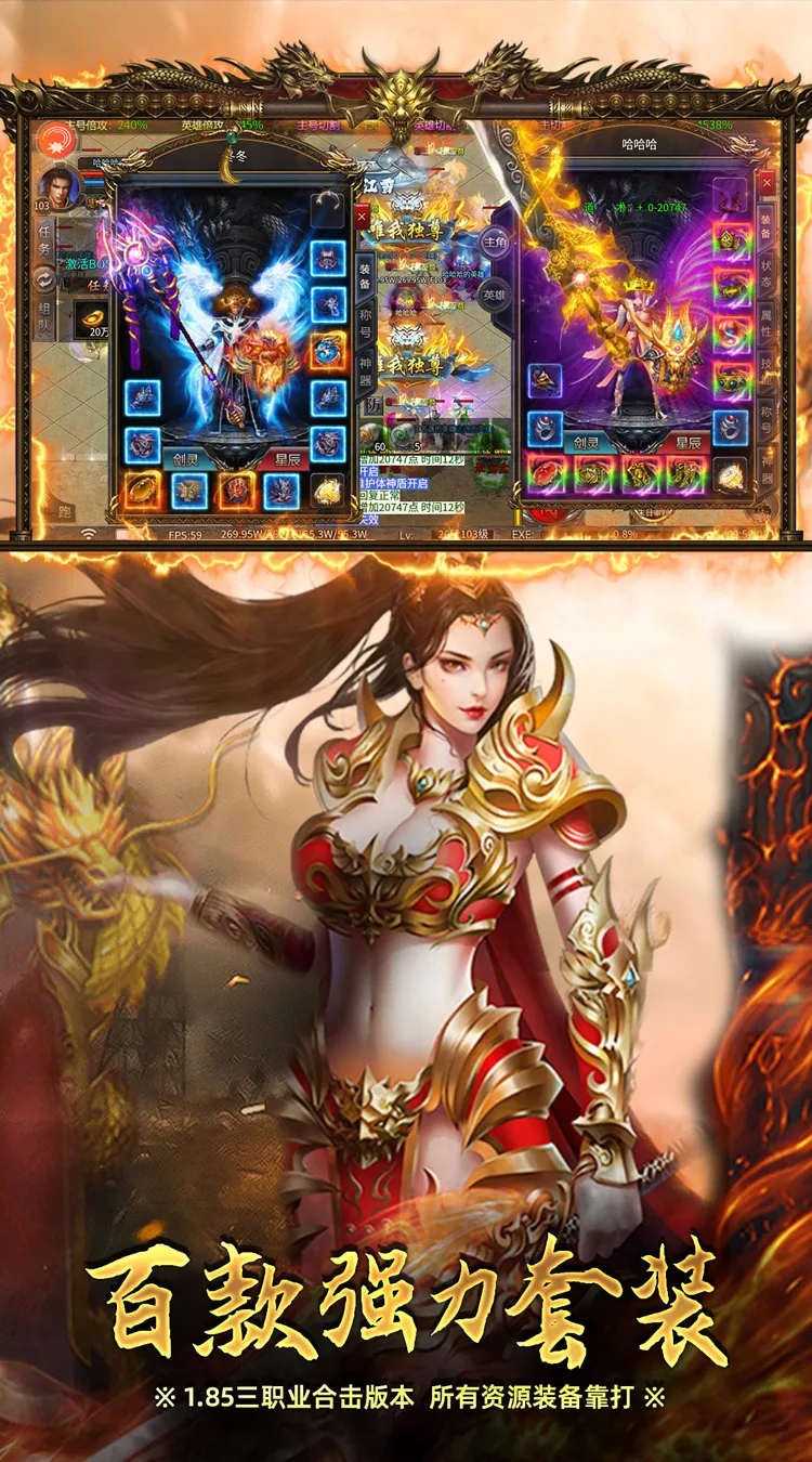 炼狱战神是一款1.85三职业合击版本,所有资源装备靠打,物价稳定,生态平衡。