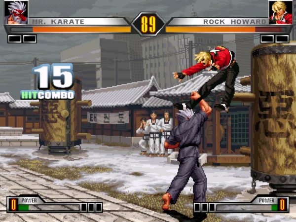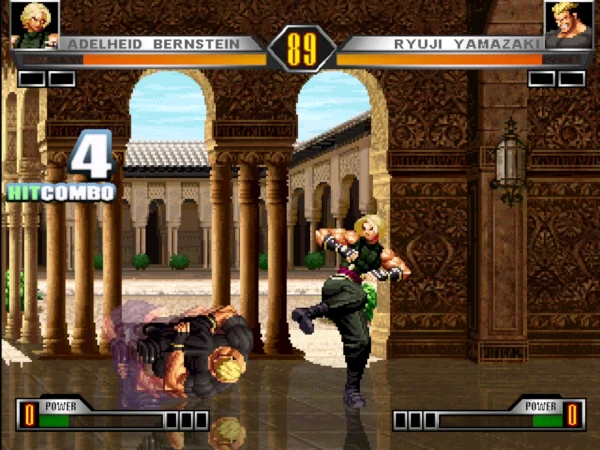以《拳皇》为主题的一个格斗游戏,游戏在收录了拳皇中的大部分的人气角色之外,还增加了一些很少出场的人物。包括龙虎之拳中的李白龙,天狗版的坂崎琢磨等,游戏的画面保留了早期的拳皇游戏的风格,其实很多老玩家更加的喜欢这样的风格。游戏的动作招数以及必杀技能都保留了原版的特色,支持同时四个角色出战。