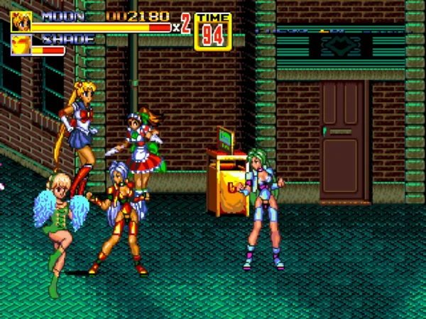 国外玩家的一个改版,这个改版把游戏的主角从怒之铁拳中的人物换成了美少女战士水手月亮中的角色。包括所有的敌人角色,也都换成了相应的女性角色。除了5个美少女战士外,游戏中所有出场的敌方人物也可以选择,不过敌方人物的招式就更加的少了。游戏相比于原版来说,色彩更加鲜艳,看上去要好看不少!