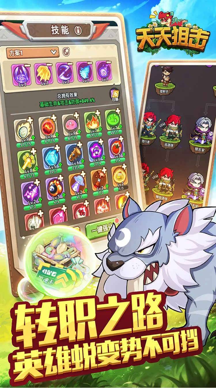 天天狙击是一款放置挂机角色扮演游戏。小小原始人挑战各种小怪兽,摸摸龙蛋狂掉神装!多种职业,随你挑选!召唤伙伴,修炼战技!轻松打怪全屏割草!