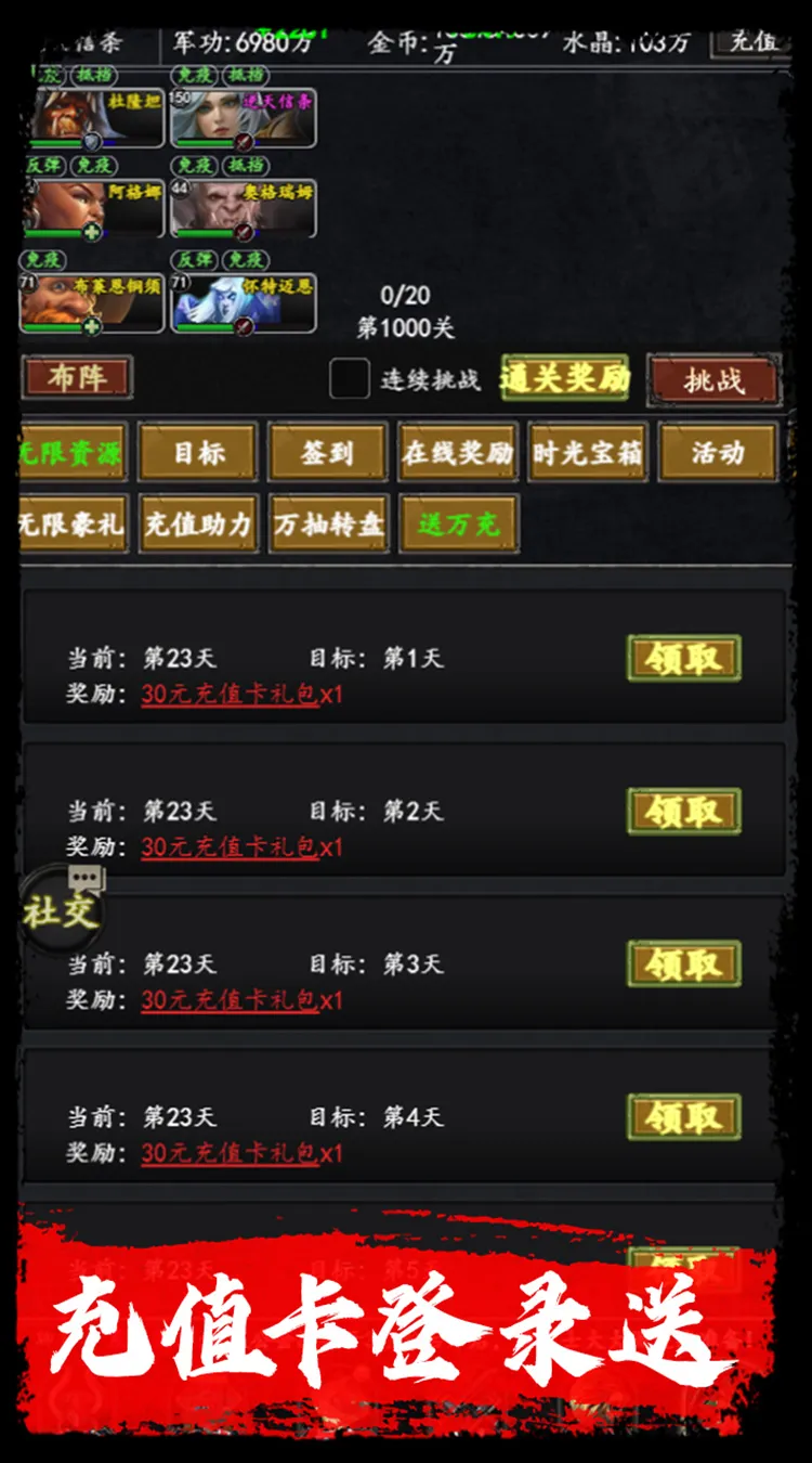 礼包详情:水晶(99999),豪华军功礼包(5),进阶丹(1000),升星丹(500)