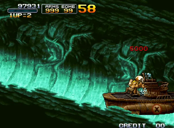 除去传统的动作射击版面,游戏还增加了水下版面、横版和纵版飞行射击版面,此时的游戏方式更接近飞行射击游戏而不是动作射击。
