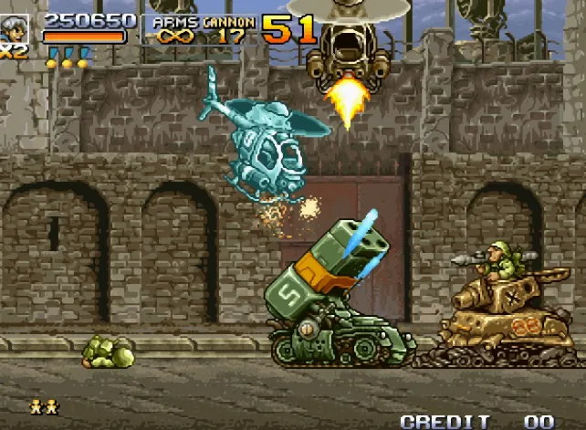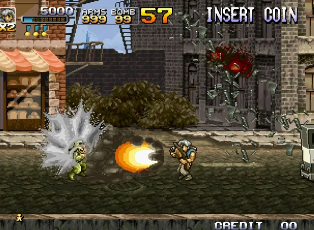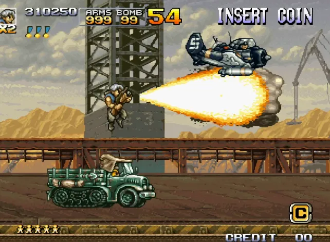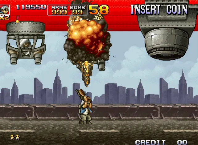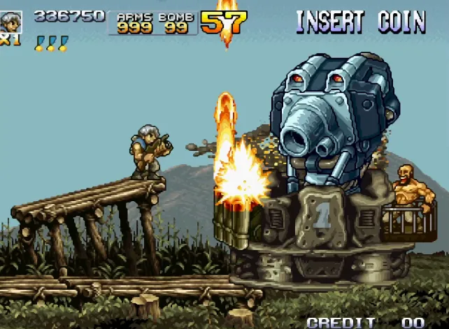 《合金弹头4》一款非常经典街机游戏,风格和控制类似于以前的作品,两个新面孔的角色Trevor和Nadia将出现在开始阵容中,合金弹头4中你的敌人大多是士兵和各种各样的敌军战斗车辆。狙击手、刀手、直升机、坦克、吉普车、等各种作战对象都将出现在游戏中,游戏中将出现的武器有双管机枪、霰弹枪、喷火枪、火箭筒、铁蜥蜴等。游戏中如果你奖分食物吃的太多的话,会变大变胖,游戏中幽默风格依然,在一个关卡中主角如果被科学家用标枪打中的话,会变成猴子,当变成猴子后,主角可跳的更高,还可爬绳子。