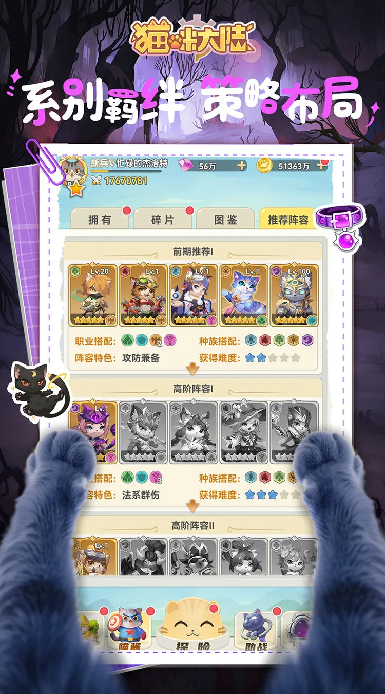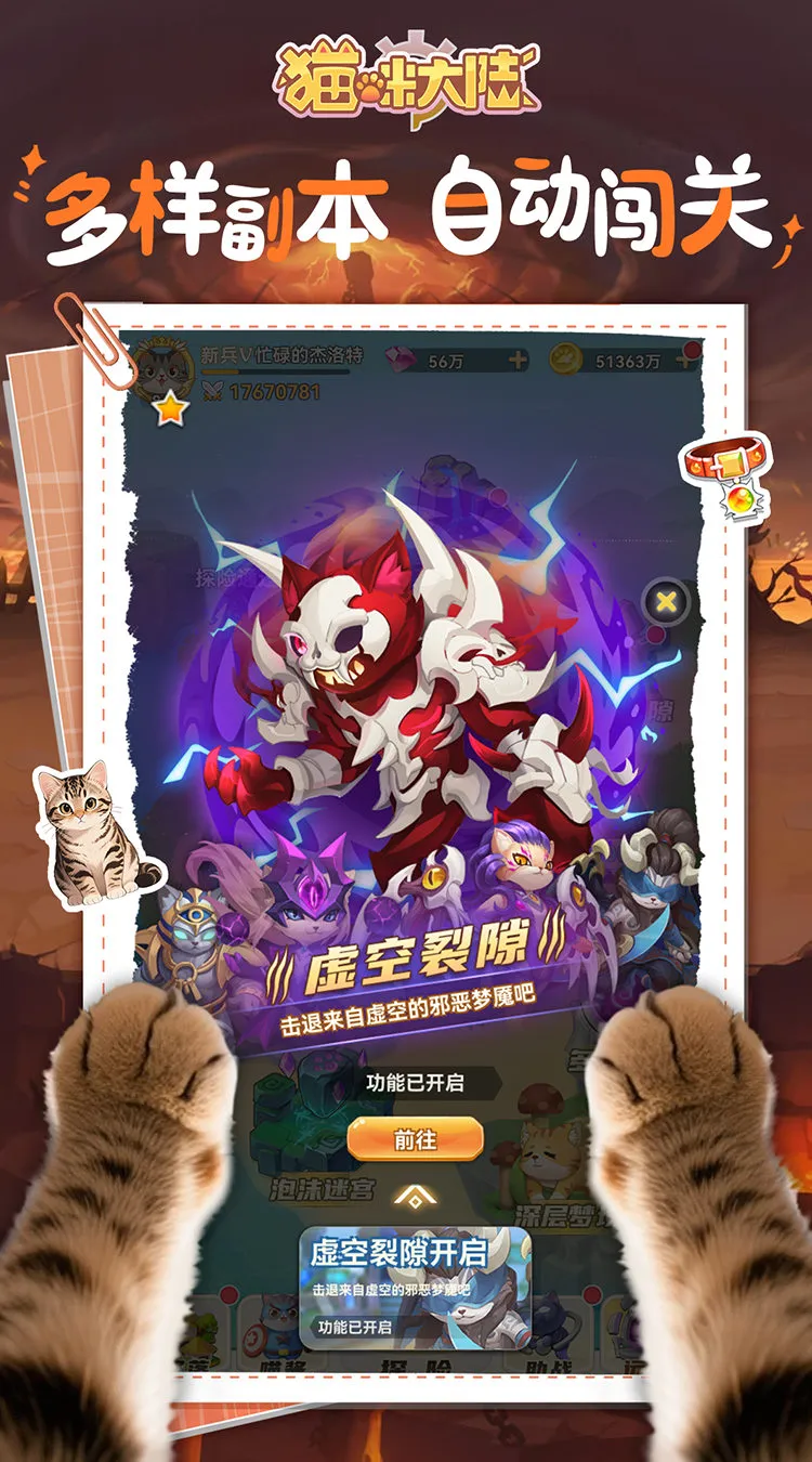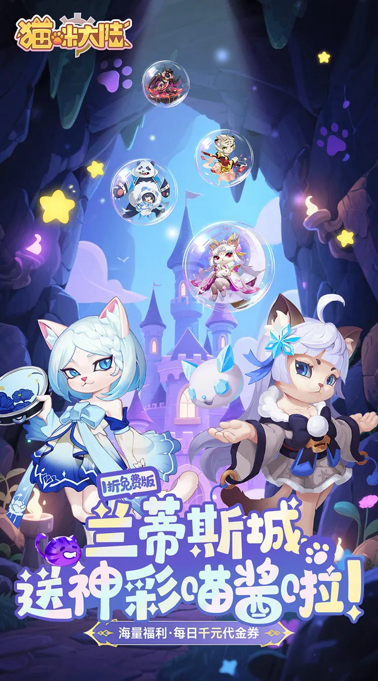 《猫咪大陆(1折免费版)》每天领取1000代金券,海量直购免费买,不氪金也能畅玩;送毕业阵容 ,初期-毕业4套阵容畅玩包爽;创角即送神彩级喵酱,为您保驾护航;自动推图没烦恼,一键托管解放双手!快来一起撸猫畅玩吧!与喵界守护者一起,抵抗食梦魔入侵,维护喵界和平!文章源自阿飞游戏网-https://www.afeigame.cn/8582.html