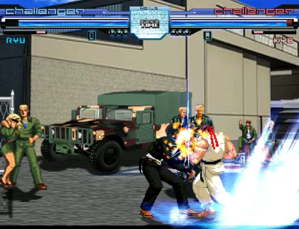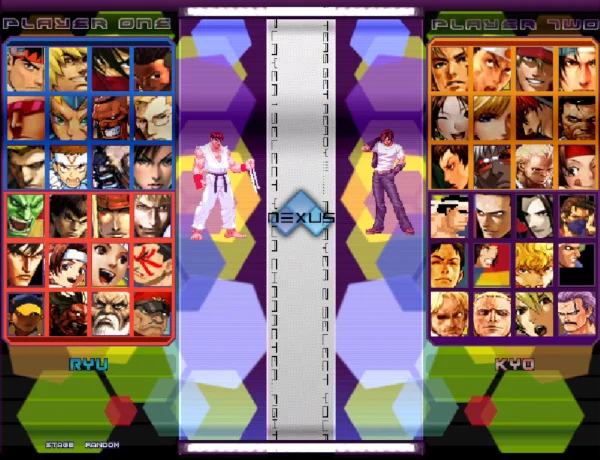 一个不错的格斗游戏,游戏中的角色都是来自SNK和Capcom中的角色,左边选人画面是卡普空人物,右边的是SNK游戏人物。所有人物的必杀技都有重新渲染,加上了很炫的光圈效果。人物的角色也算不少了,可以看到很多动作类的游戏角色,包括名将中的队长也有出现,是一个值得一玩的格斗游戏!