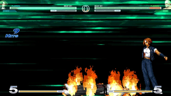 仿著名主机游戏《拳皇14》的一个MUGEN格斗游戏,游戏的标题画面和选人画面的模仿度是非常的高的,尤其是长腿美女莉安娜的画像非常好看,可惜没有拳皇14新增的人物-金家藩的性感师娘。不过游戏加入了一些其他角色,像坂崎琢磨,女暴风,这些在原版没有的角色。MUGEN只能做2D的游戏,所以进入游戏后还是2D的对战场景,只是游戏风格有故意模仿14的风格,人物会随着远近景缩放,火焰等招式加了炫丽的效果。但是离真正的拳皇14还是有非常大的差距的!