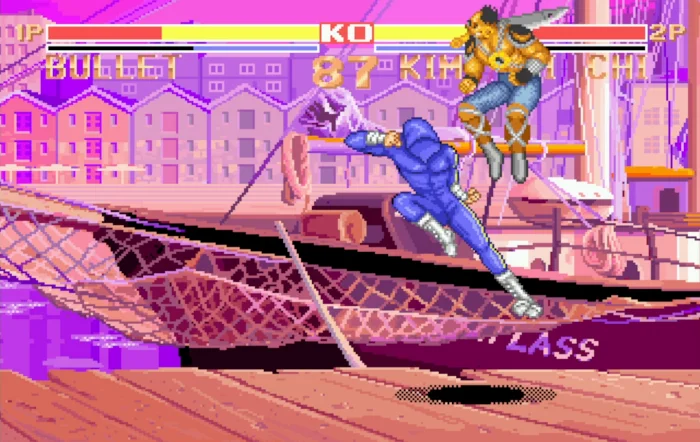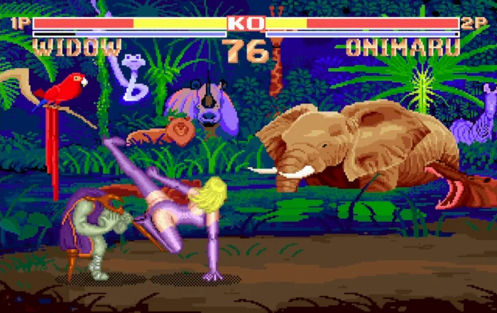 在街机上是没有看过这个游戏,不过应该也不会是原创的,应该也是仿制某个很早期的街机作品。这个格斗游戏的玩法和原始的格斗类游戏很像,几乎所有的角色都没有特别多的招数,都是只有两到三招的绝招,剩下的就全是看拳脚的功夫了。游戏的人物看上去也很像90年代左右的街机游戏,游戏的可选人物在MUGEN游戏上来说是非常的少的,只有12个角色!
