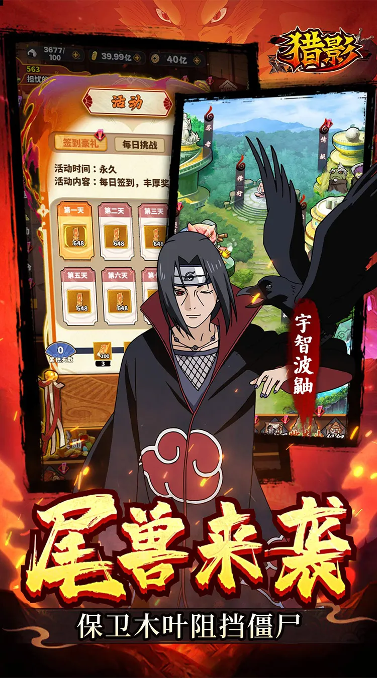 首款火影塔防手游《猎影》震撼来袭。木叶村的宁静突然被打破,大批僵尸忍者偷袭村落,你将化身指挥官,通过部署忍者、利用忍术、特技抵御僵尸忍者的入侵,守护木叶村乃至整个忍界。