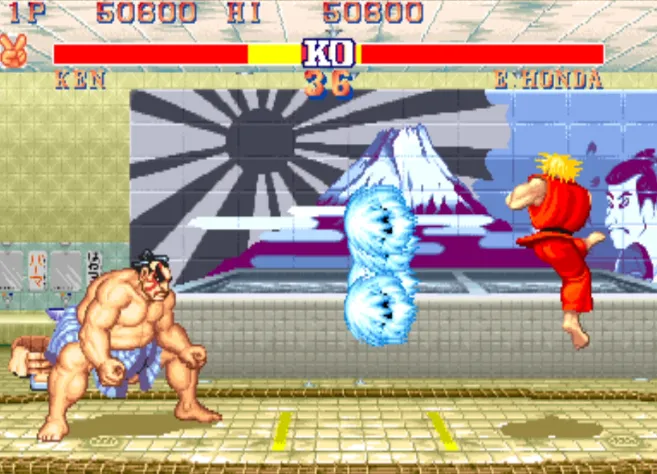 《街霸2:四大天王 超强版》比降龙版更变态,降龙版只能升龙才能发波,这个版本很多角色都能发波,而且还有很多招式都能发波,基本上可以完虐电脑。文章源自阿飞游戏网-https://www.afeigame.cn/8956.html