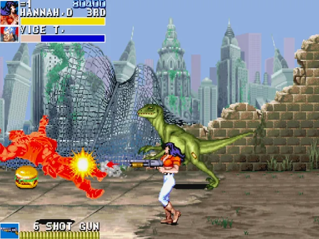 此模拟器中除了恐龙快打加强版以外,还有恐龙快打的原版,加强版主要修改了游戏中枪械的攻击效果,使得游戏中的武器更加强力,同时也修改游戏中的枪械无限子弹效果,其他方面跟原版没什么区别。