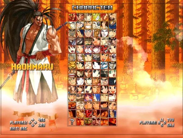 非常精美的一款格斗类游戏,而且游戏用的题材是比较少见的侍魂和月华的剑士中的角色。游戏的战斗场景和原版侍魂以及月华剑士完美吻合,游戏的招数也在原版的基本上做了优化设计,看上去非常的酷。游戏的可选人物众多,选人画面人物的造型十分优秀,基本上侍魂中的各代人物都有出场,月华的剑士中的出场人物相对会少一些,游戏中还加入了一些其他游戏的角色,此版本总的来说是一款非常精美好玩的格斗类游戏!