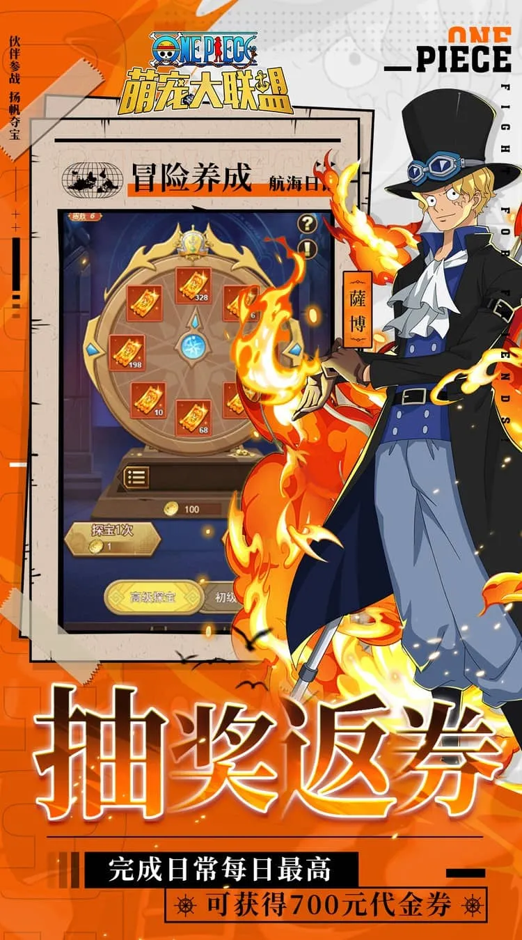 ★【创角福利】梦幻开局,创角送索隆与佩刀秋水。更有3000元充值卡获得,使用后,VIP等级立即提升至V5