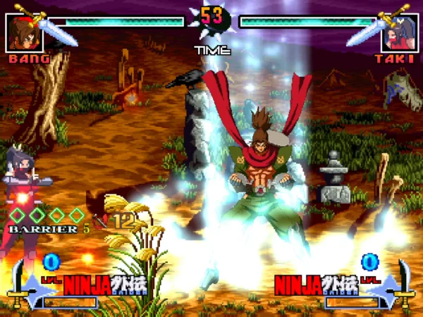 蛮有创意的一个MUGEN格斗游戏,所有的可选角色都是来自于各个有名的动作类游戏或格斗类游戏,所有的角色都是忍者,包括街霸中的VEGA,出击飞龙中的龙,名将中的忍者,侍魂中的服部半藏和加尔福特,以及真人快打中的各种忍者。还有火影忍者中的角色,所有的角色的招数也还保留着原版的风格,是一个非常好玩的格斗游戏!