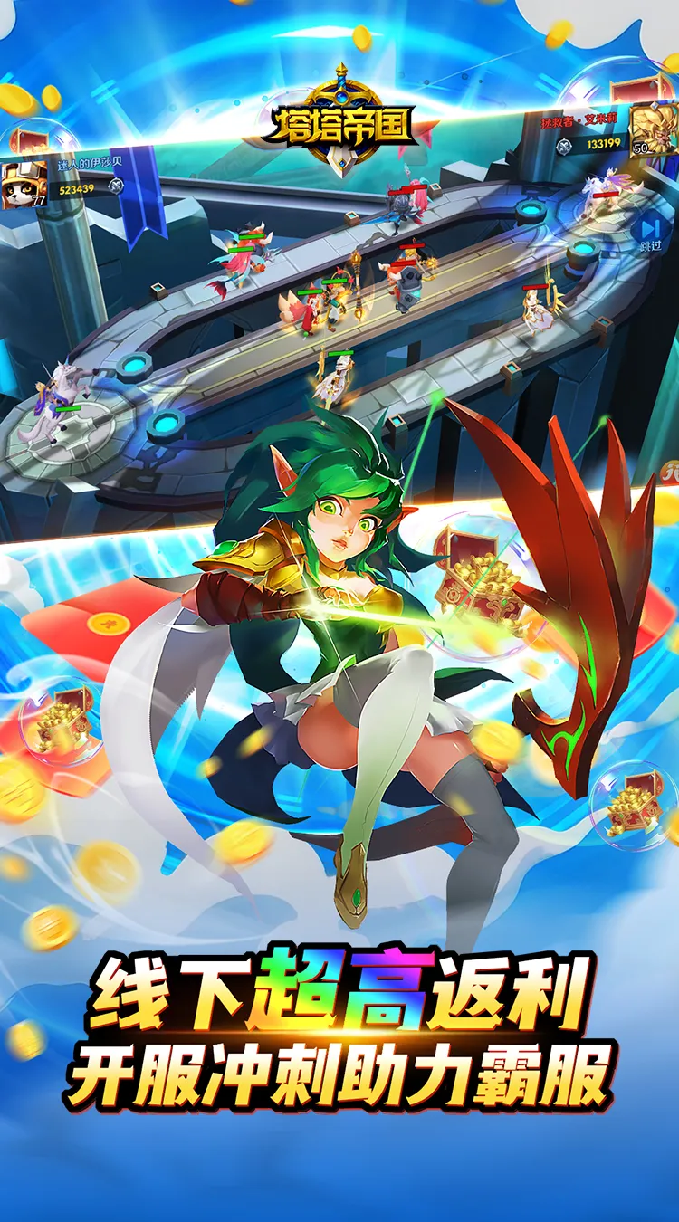 《塔塔帝国(0.05折塔防守卫巅峰)》是一款殿堂级3D欧美风的“英雄策略塔防”手游,是一款满足你对英雄所有想象的塔防游戏。游戏讲述来自不同地方的英雄团结作战,在领主大人您的指挥下,抵御黑暗入侵,保卫家园的冒险故事。精美酷炫的英雄外形和技能特效能给您带来王者级的塔防战斗体验。强大趣味的RPG养成系统,多维度的技能释放策略,酷炫的全屏大招能给您带来燃尽十足的战斗快感!游戏同时还拥有数十种创新玩法,如“随机关卡、无尽回廊、套装技能、地形机关、巅峰赛”等,满足你对塔防游戏的一切想象!