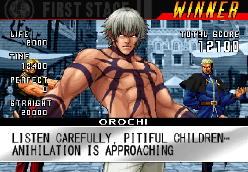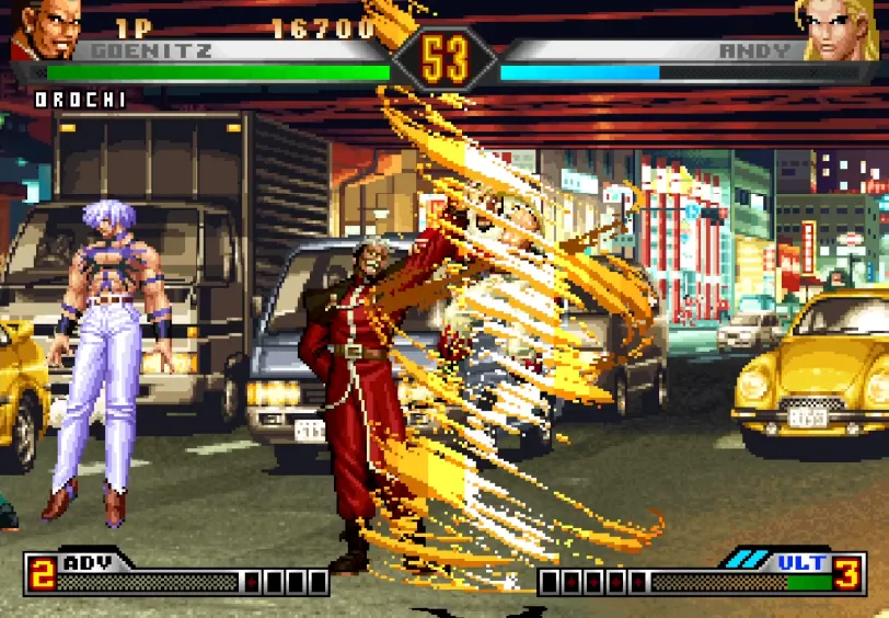 《拳皇98终极之战》,简称KOF98UM,于KOF98十年后的2008年3月18日发行,是一款KOF98的重制版,以98为基础再度调整游戏平衡,强化了原有的EX模式,并在此基础上追加了新模式ULTIMATE,玩家可以任意在“前跳”或“猛跑”、“侧身闪避”或“翻滚”以及“攒豆”或“集气”之间组合自己惯用的模式。