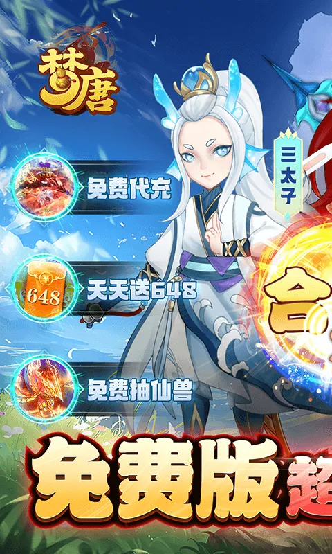 《梦唐》免费版抓宠回合制手游来啦,游戏上线就送VIP7、88w元宝、1000w银两、1000充值点,天天登录领648充值卡,每日在线送328充值卡,升级再送万元充值,更有GM工具免费打金充值!海量直购免费破解,充值奖励免费拿!真回合所有神兽任你抓,无需充值也能轻轻松松升至满觉醒,让您享受最舒适的回合制乐趣!