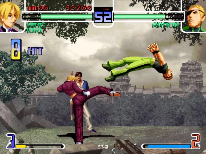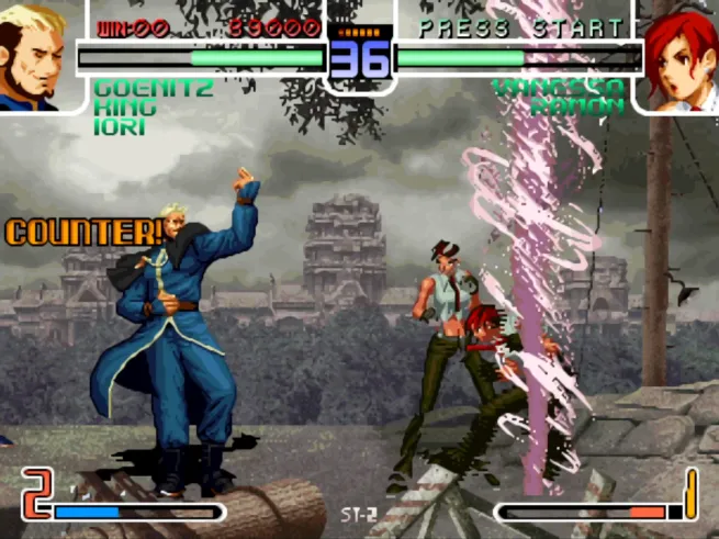 拳皇2002PS2版本,加入到了街机模拟器中,PS2的版本比街机版本多了几个角色,分别是高尼茨、暴走八神庵、矢吹真吾、吉斯、琼。其他玩法并没有改变。文章源自阿飞游戏网-https://www.afeigame.cn/9511.html