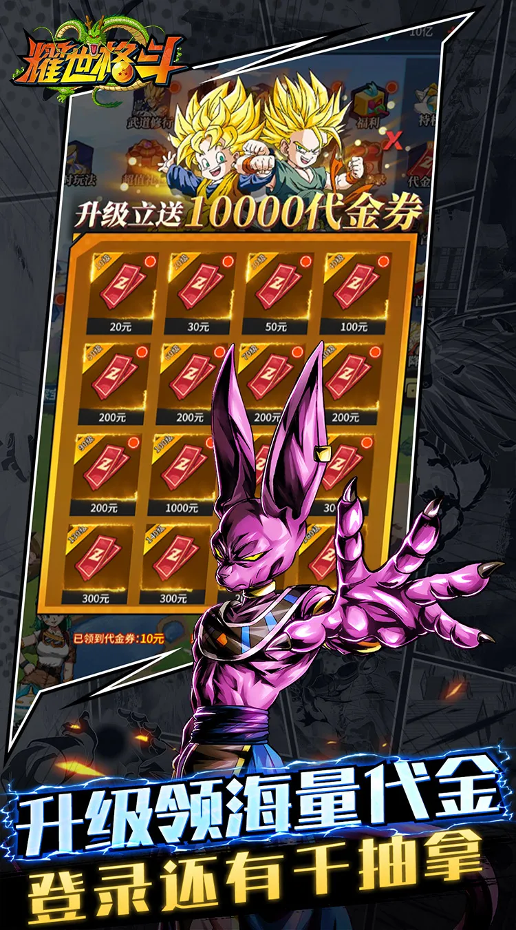 升级特权可拿野兽孙悟饭,最高可获六个,轻松升级获取英雄两不误。